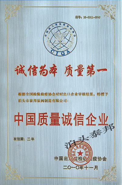 ISO9001質量管理體系證書英 質量承諾信譽單位證書 特種泵設備制造許可證書